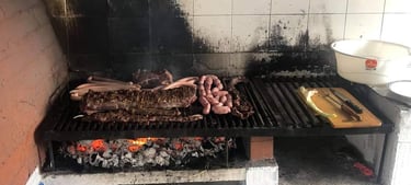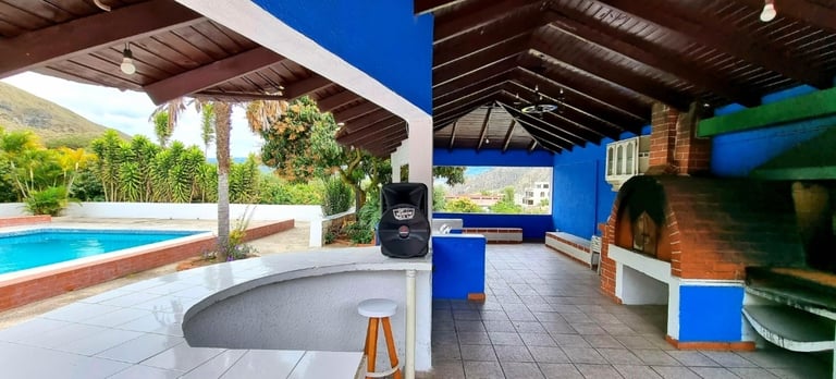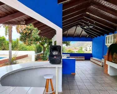Enorme Zona de BBQ CUBIERTA completamente equipada con mesas, sillas, parilla y barra para preparar asados con tus amigos y familiares
